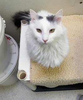 And lastly, Mini Cooper. I bought a grab bag of goodies with Mini Cooper's picture on it Sunday. I like the Mini Cooper car and that's why I chose that particular bag. So, of course, before I left, I had to go and visit Mini Cooper. Just by coincidence he was in one of the rooms I used to clean. The cats in that particular room are FELV+.